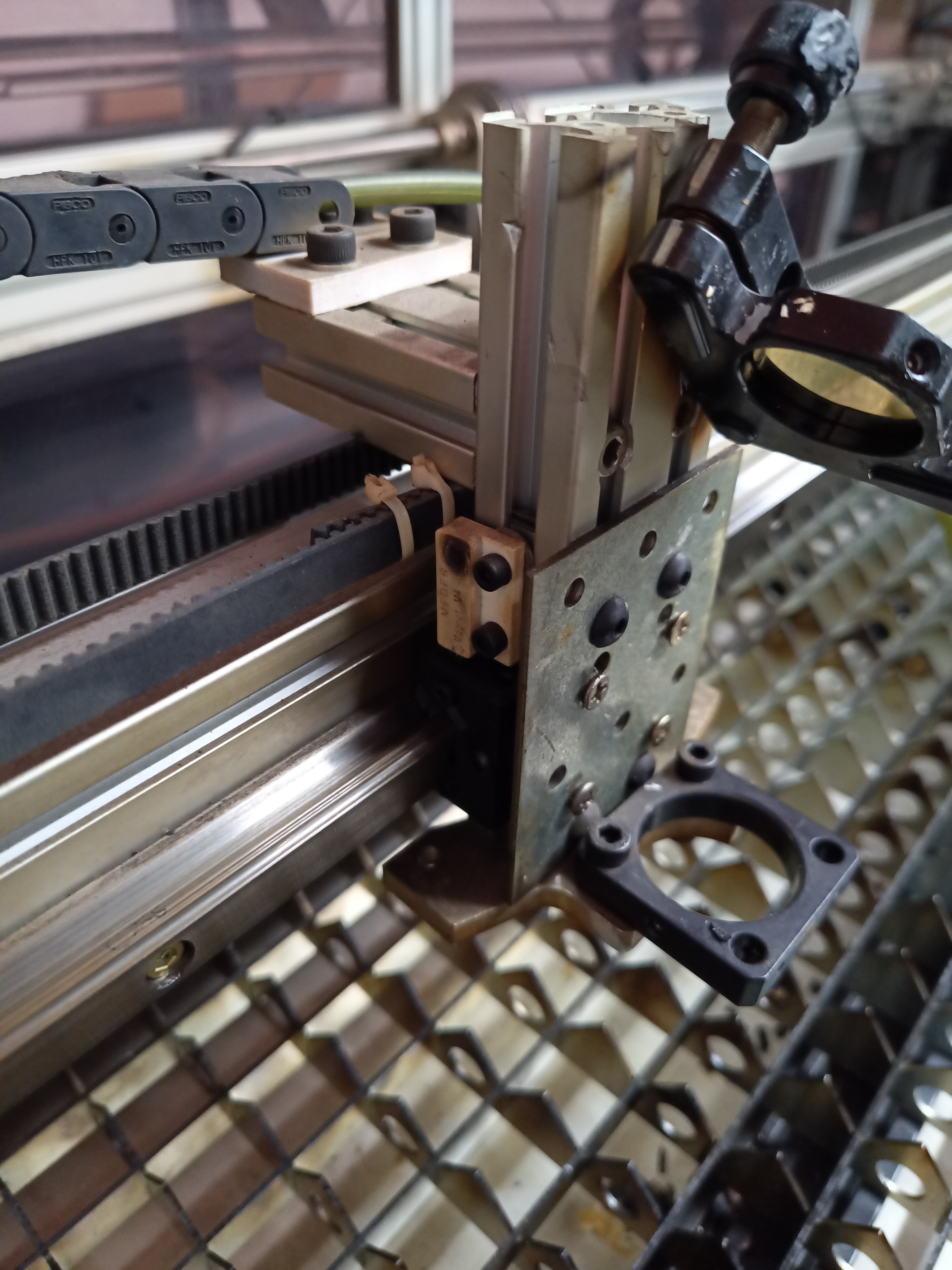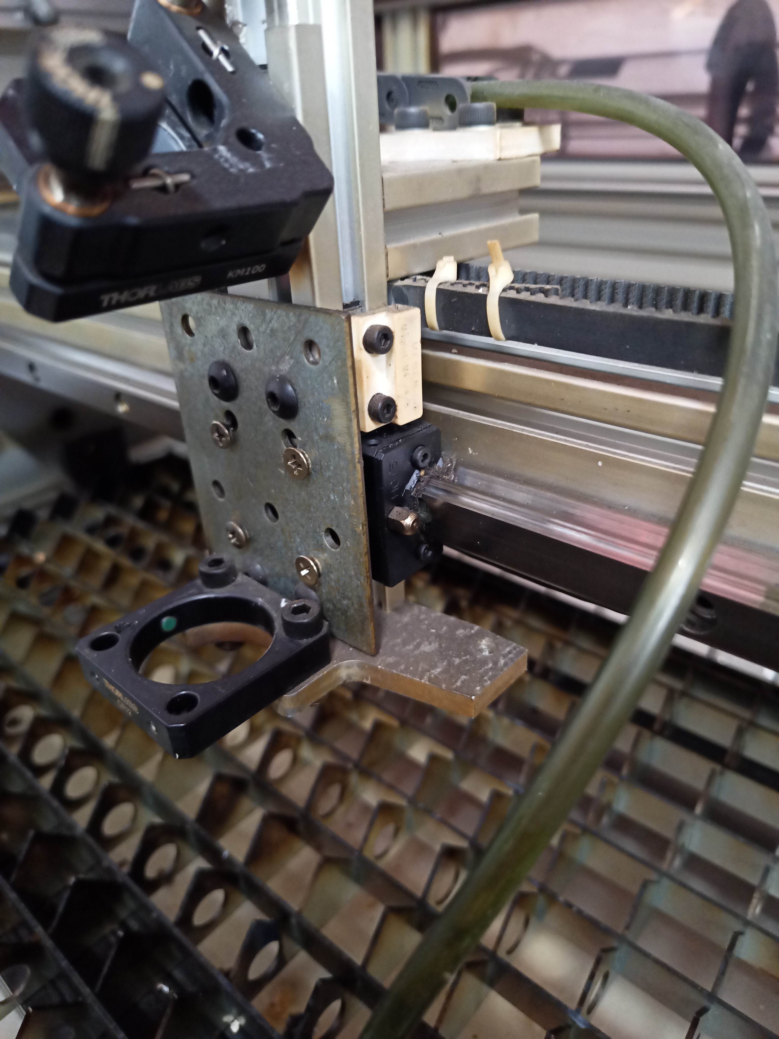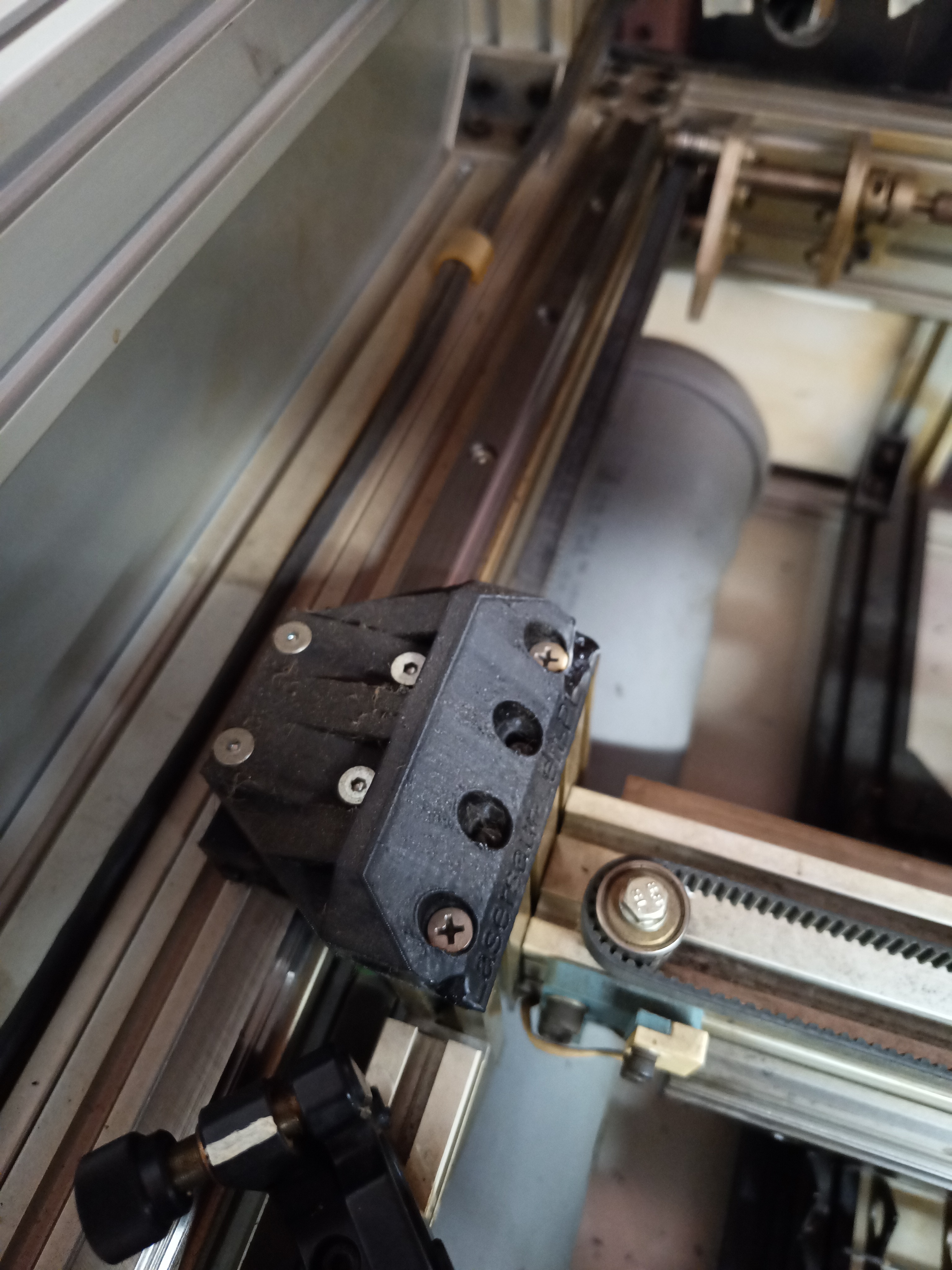 Je nach Positionierung des ersten Spiegels kann ein teil des linken Lagers dem Laserstrahl im Weg sein. Dann muss entweder Spiegel oder 3D-Druck angepasst werden.
